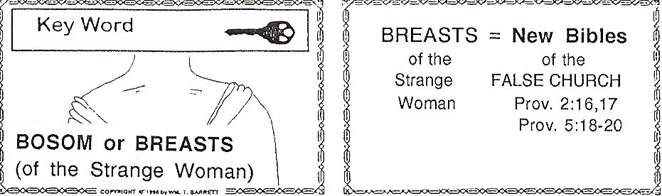 Thus, in it’s symbolic language, the Bible has warned us to “stay with the Bible (breasts) that the”True Church (wife)” has had “for a long time (since our youth)”, and to “leave the Bible (breasts or bosom)” of the False Church (strange woman) ALONE!